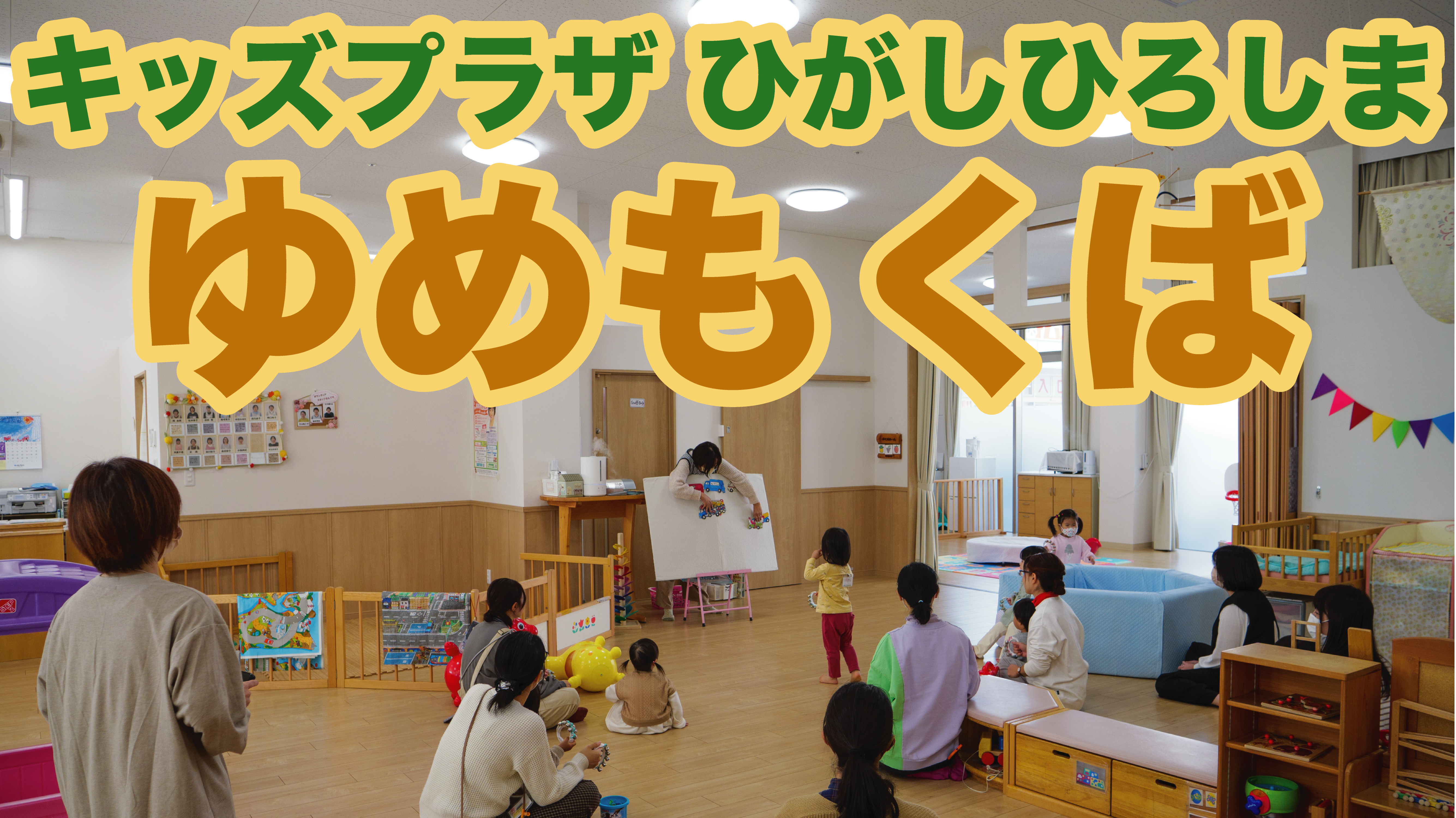 ゆめもくばさんは西条のハローズの2階にあり、0、1、2歳の子どもたちがのびのびと遊べる場所です。