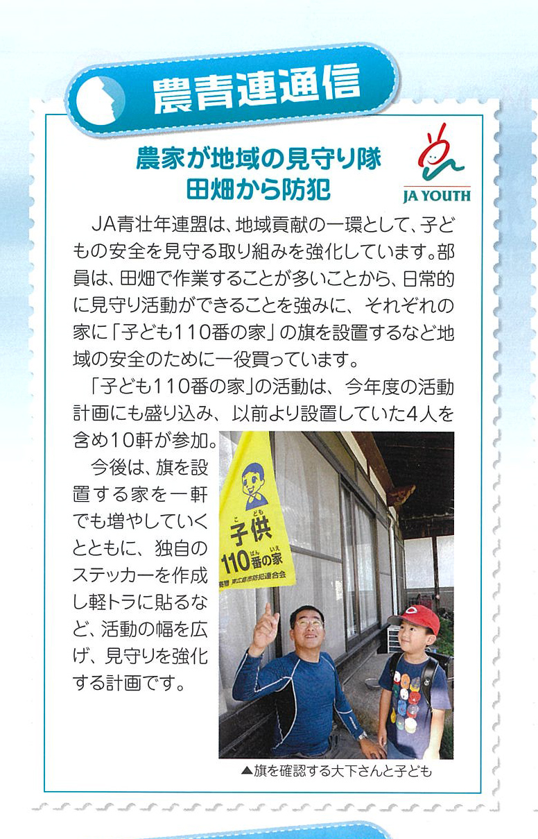JA広島中央農青連の盟友間では「子ども110番の家」